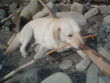 The cabin was about 10 miles from cell phone coverage which was a nice change of pace. I actually took a very quick and chilly dip in the Nooksack River (North Fork, actually) after some good old fashioned peer pressure from the other gents on the trip. It was very, very cold. Imagine submerging in a glass of ice water and you’ll understand what it felt like. Snow melt is in full gear and the water is ice cold. Riley enjoyed the water and the sticks…
